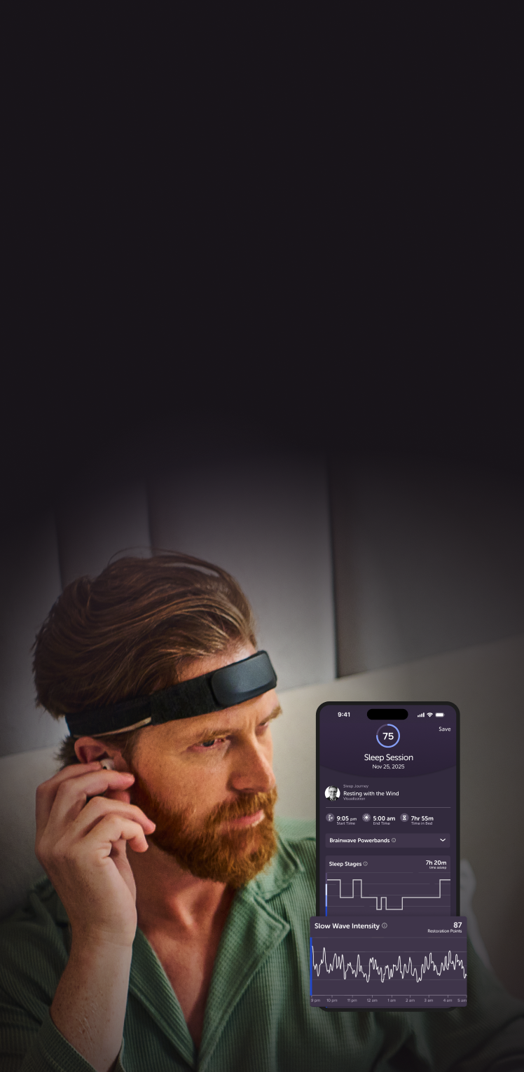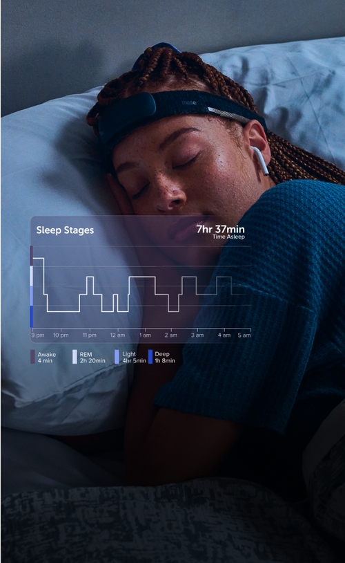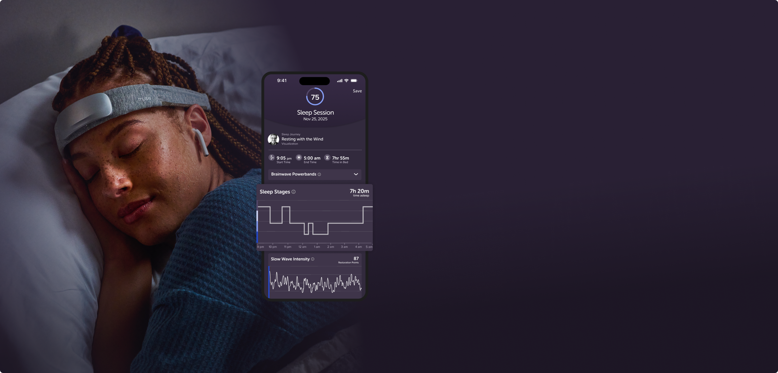 Muse S tracks your sleep stages in real-time—light, deep, and REM—giving you a personalized breakdown of your night. Gain insights that help you adjust habits, improve recovery, and wake up feeling truly refreshed.