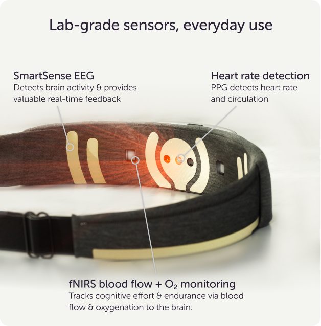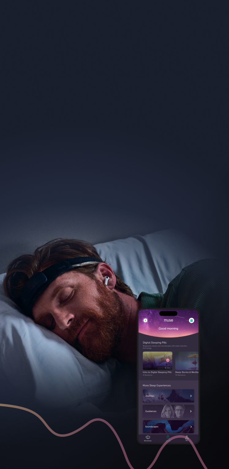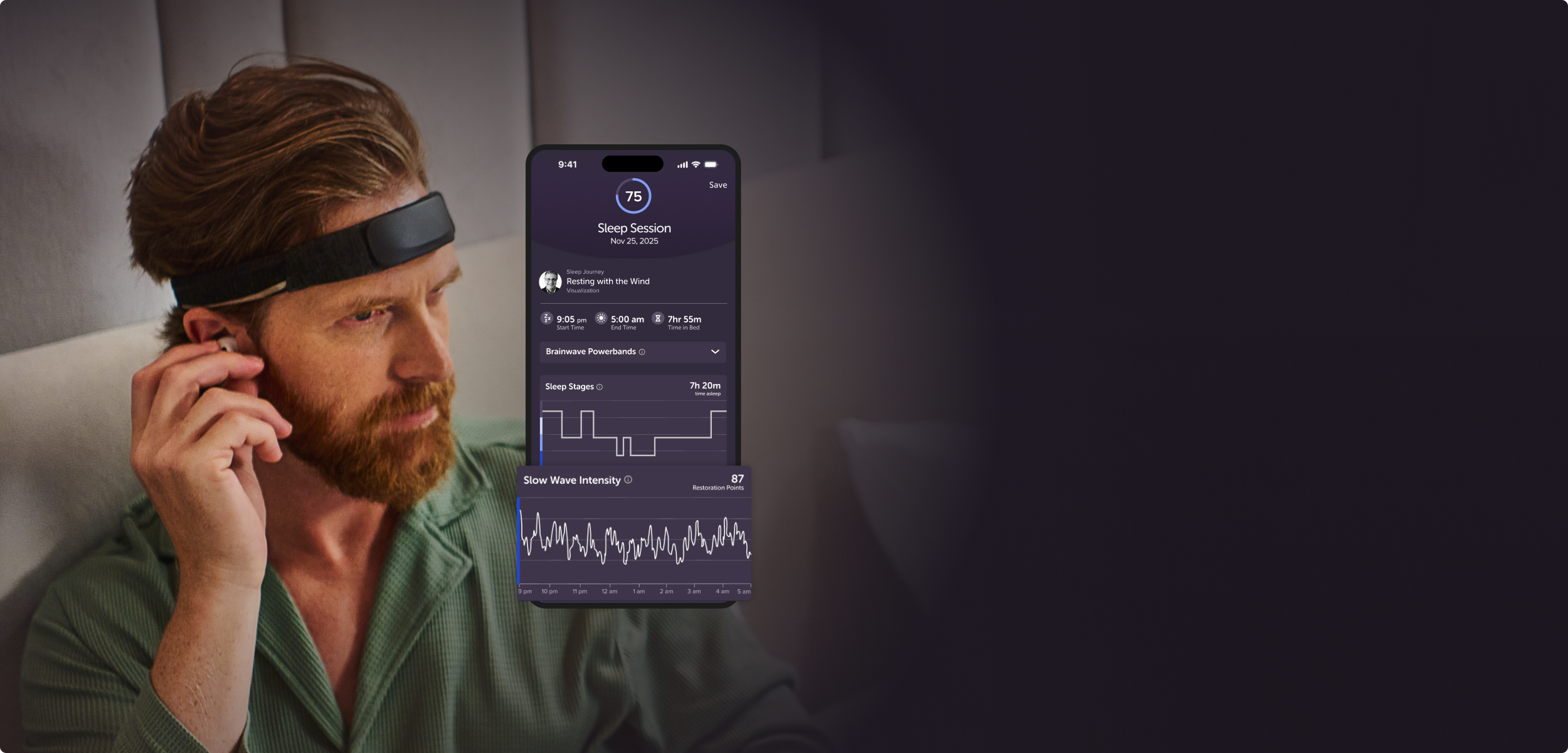 Deep sleep is where recovery happens. Muse S uses EEG to power overnight sleep tracking and deep sleep insights by measuring your delta brain wave activity. This allows you to track the quality and quantity of your deep sleep.