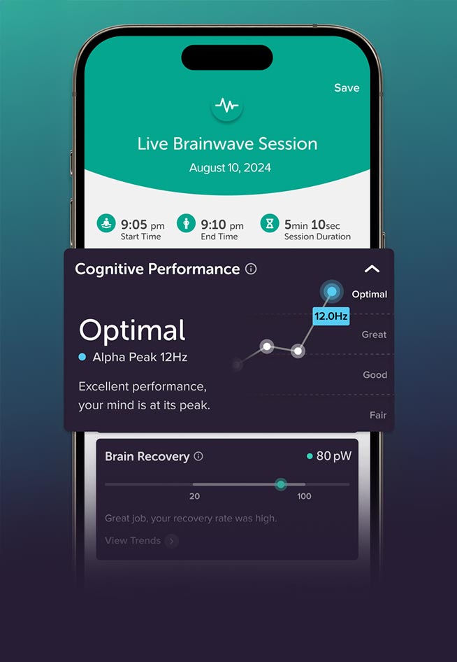 Seven EEG sensors detect and measure brain activity, providing biofeedback to optimize mental performance